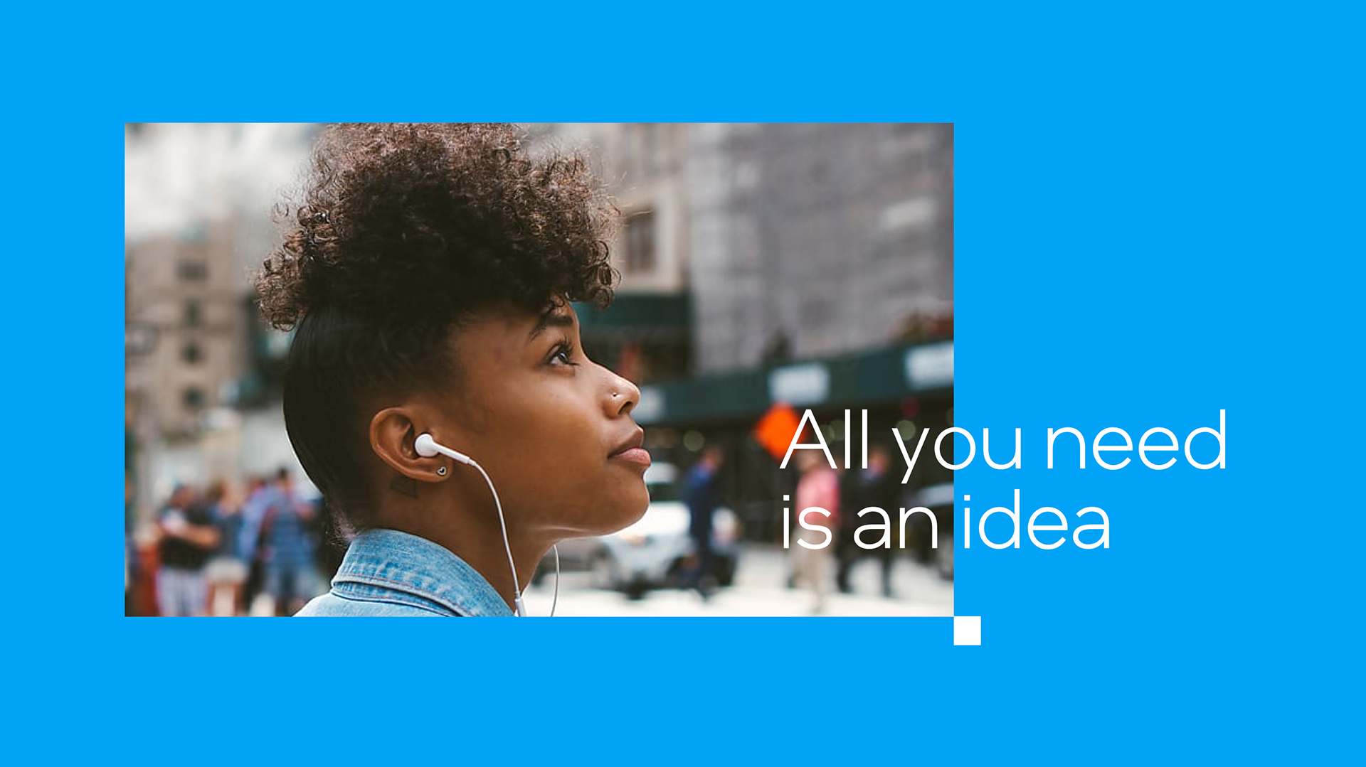 The foundation of the new Intel master brand visual language is an iconic graphic device we call "The Spark." The Spark is a corner-to-corner relationship between a small square and a larger square. It visually represents Intel technology as the catalyst for bigger, world changing ideas.